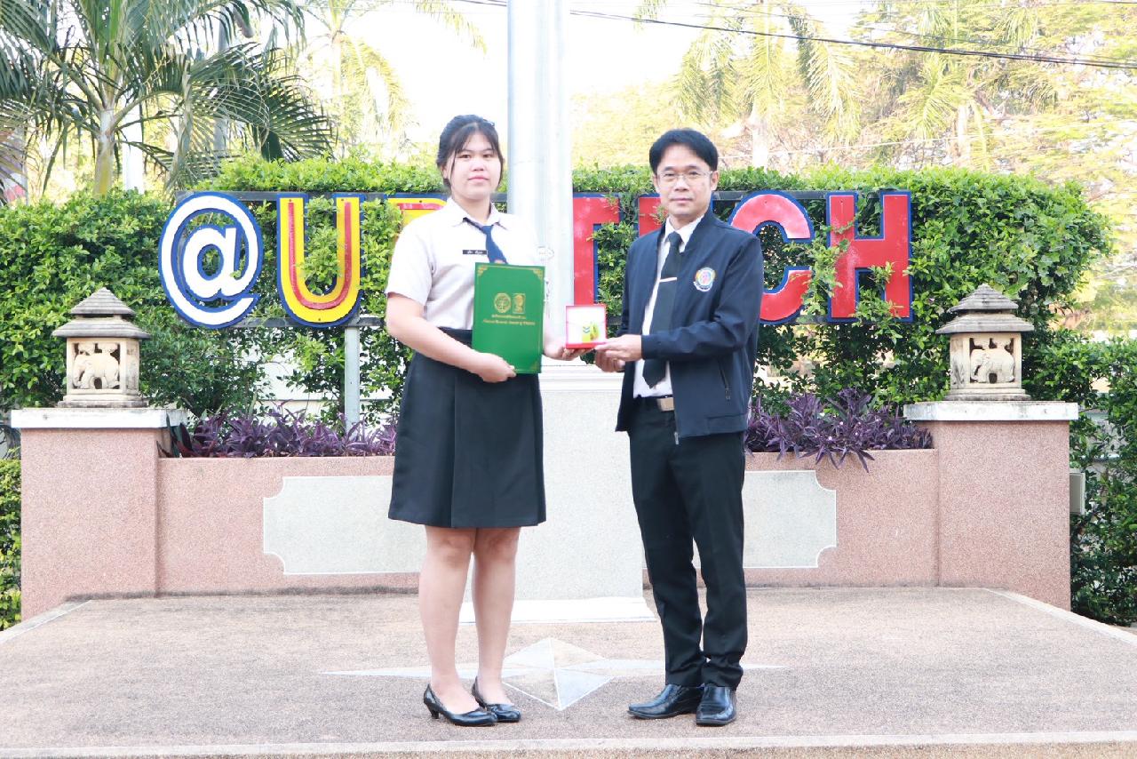 วันพฤหัสบดีที่ 15 มกราคม 2569 นายไพฑูรย์ ธนพงศ์ภากรณ์ ผู้อำนวยการวิทยาลัยสารพัดช่างอุดรธานี พร้อมด้วยคณะผู้บริหาร ครู บุคลากร และนักเรียน นักศึกษา เข้าร่วมพิธีมอบเกียรติบัตรโครงการประกวดสิ่งประดิษฐ์และนวัตกรรมระดับอาชีวศึกษา ประจำปีการศึกษา 2568 โครงการประกวดสิ่งประดิษฐ์และนวัตกรรมระดับเยาวชน “Thailand New Gen Inventors Award 2026” (I - New Gen Award 2026) ระดับอาชีวศึกษา กลุ่มเรื่องการท่องเที่ยวและเศรษฐกิจสร้างสรรค์ ผลงานประดิษฐ์เรื่อง ”เอิ้นขวัญ“ ได้รับรางวัลเหรียญเงิน ระดับชาติ พร้อมทั้งให้โอวาทแก่นักเรียน นักศึกษา ณ บริเวณหน้าเสาธง วิทยาลัยสารพัดช่างอุดรธานี