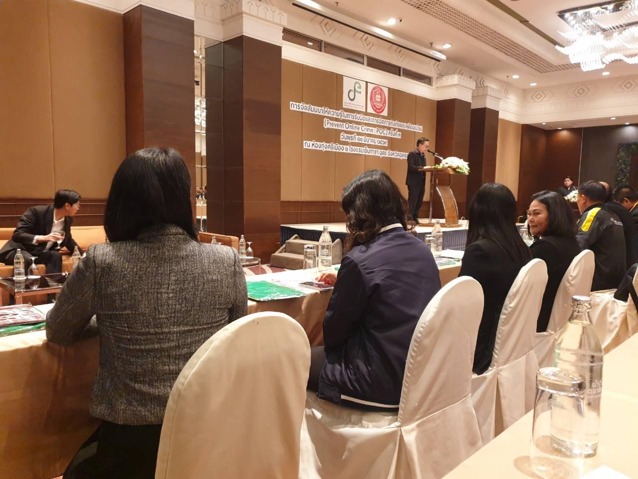 วันพุธที่ 11 มีนาคม 2569 นายไพฑูรย์ ธนพงศ์ภากรณ์ ผู้อำนวยการ ได้มอบหมายให้ นายสถาพร จันทะพา หัวหน้างานศูนย์ข้อมูลฯ, นางสาวพัชรี บุญมี ครูสอนสาขาวิชาเทคโนโลยีสารสนเทศ และนางภัทรภรณ์ อิงสุรารักษ์ เจ้าหน้าที่งานศูนย์ข้อมูลฯ เข้าร่วมงานสัมมนาให้ความรู้ในการรับมือและการจัดการกับภัยและคดีออนไลน์ สำหรับเจ้าหน้าที่ภาครัฐ และภาคเอกชน นักศึกษา หรือประชาชนทั่วไป ณ ห้องทุ่งศรีเมือง 1 โรงแรมเซ็นทาราคอนเวชั่นเซ็นเตอร์ จ.อุดรธานี