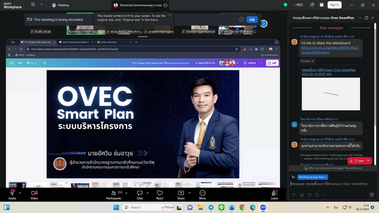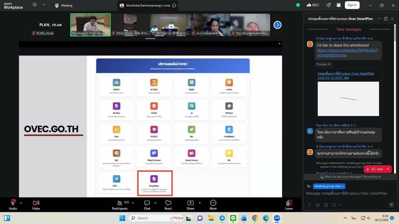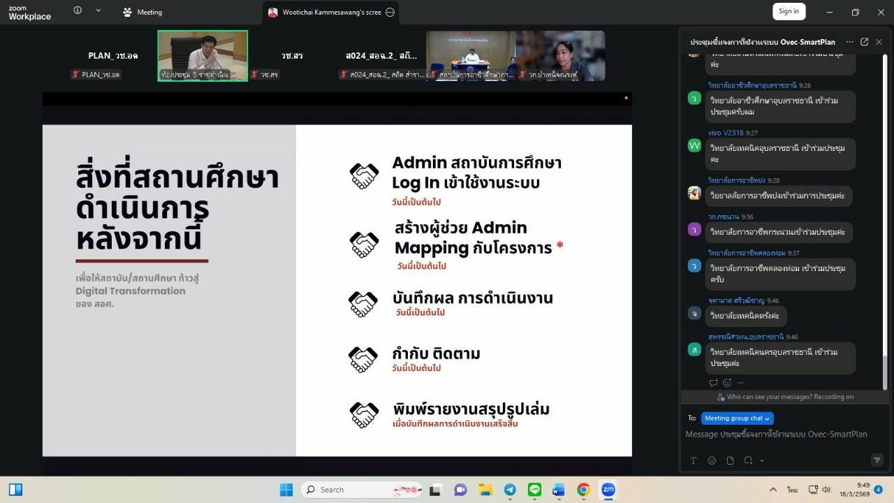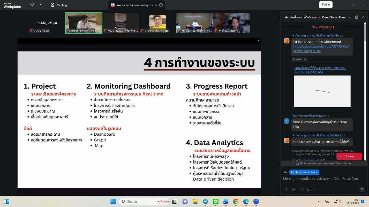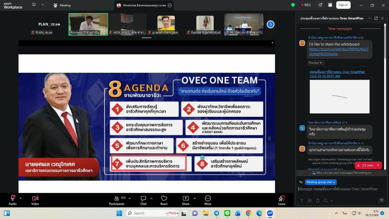 วันพุธที่ 18 มีนาคม 2569 นายไพฑูรย์ ธนพงศ์ภากรณ์ ผู้อำนวยการ ได้มอบหมายให้งานวางแผนและงบประมาณ เข้าร่วมประชุมออนไลน์ชี้แจงการใช้งานระบบบริหารแผนปฏิบัติราชการดิจิทัลของสำนักมาตรฐานการอาชีวศึกษาและวิชาชีพ (OVEC – SmartPlan) ผ่านช่องทาง Facebook Live สำนักมาตรฐานการอาชีวศึกษาและวิชาชีพ
