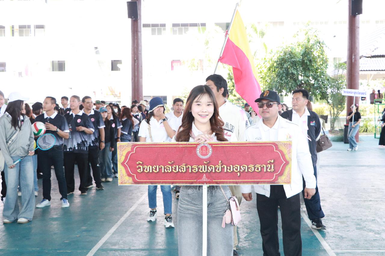 วันศุกร์ที่ 16 มกราคม 2569 นายไพฑูรย์ ธนพงศ์ภากรณ์ ผู้อำนวยการวิทยาลัยสารพัดช่างอุดรธานี พร้อมด้วยว่าที่ร้อยโท อภิเดช สารคำ รองผู้อำนวยการฝ่ายบริหารทรัพยากร นายณัฐพล สิงห์แม่ง รองผู้อำนวยการฝ่ายแผนงานและความร่วมมือ คุณครูและบุคลากร เข้าร่วมกีฬาสานสัมพันธ์และนันทนาการครูในสังกัดสำนักงานอาชีวศึกษาอุดรธานี 69 ณ วิทยาลัยอาชีวศึกษาอุดรธานี