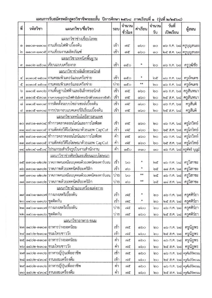 รับสมัครนักศึกษาหลักสูตรวิชาชีพระยะสั้น ภาคเรียนที่ 1 ปีการศึกษา 2568 รุ่นที่ 2 (วันที่ 13 เดือน พฤษภาคม พ.ศ. 2568)